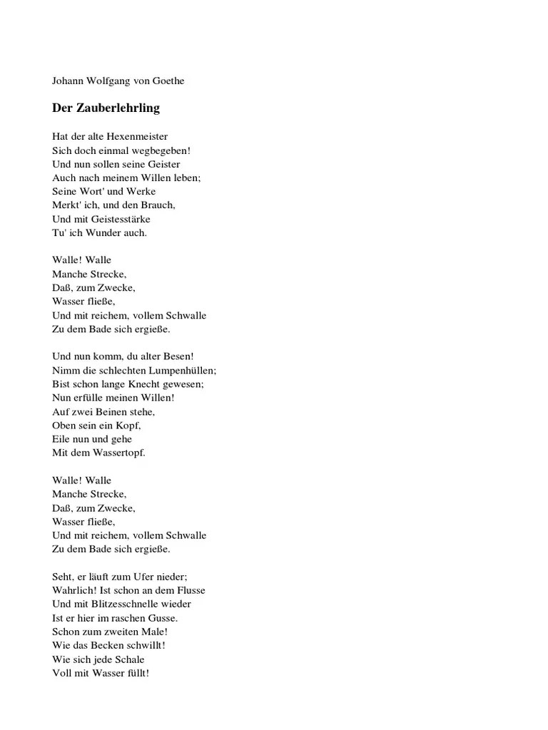 Zitat von johann wolfgang von goethe · „hast du einen menschen gern, so musst du ihn versteh'n. Der zauberlehrling ist eine ballade von johann wolfgang von goethe, die zu seinen populärsten werken gehört. 138, a| die geister, die ich rief …, aufgabe 2. Die ich rief, die geister. Werde ich nun nicht mehr los.